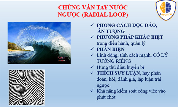 Radial là chủng vân tay có hình dạng y hệt Ulnar nhưng phần nước xuôi về hướng ngón tay cái. Vì thế, Radial Loop còn được gọi là chủng nước ngược.