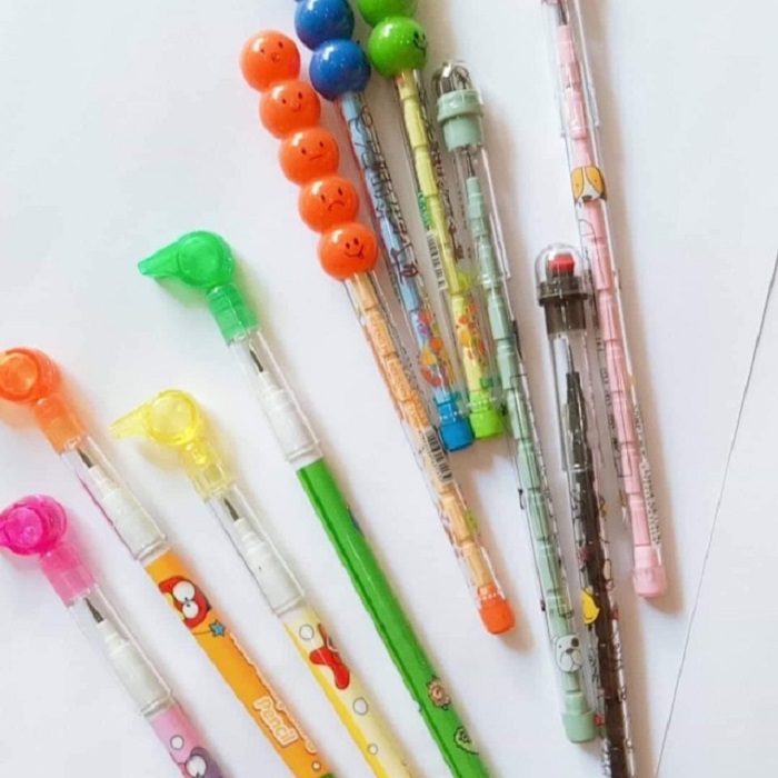 Xã hội ngày càng hiện đại nên có nhiều loại bút viết, nhiều kiểu bút tiện dụng được bố mẹ lựa chọn. Phổ biến nhất là loại **Bút chì ĐỐT**: Là loại bút chì có vỏ bằng nhựa. Ngòi bút được chia thành những đoạn nhỏ và gắn vào một gốc nhựa. Các gốc này xếp chồng lên nhau tạo thành ruột bút. Tiện lợi (viết hỏng ngòi có thể thay ngay không cần đồ gọt bút), dễ sử dụng cho trẻ em (dễ rút ngòi, chuyển ngòi) và có trọng lượng gọn nhẹ.